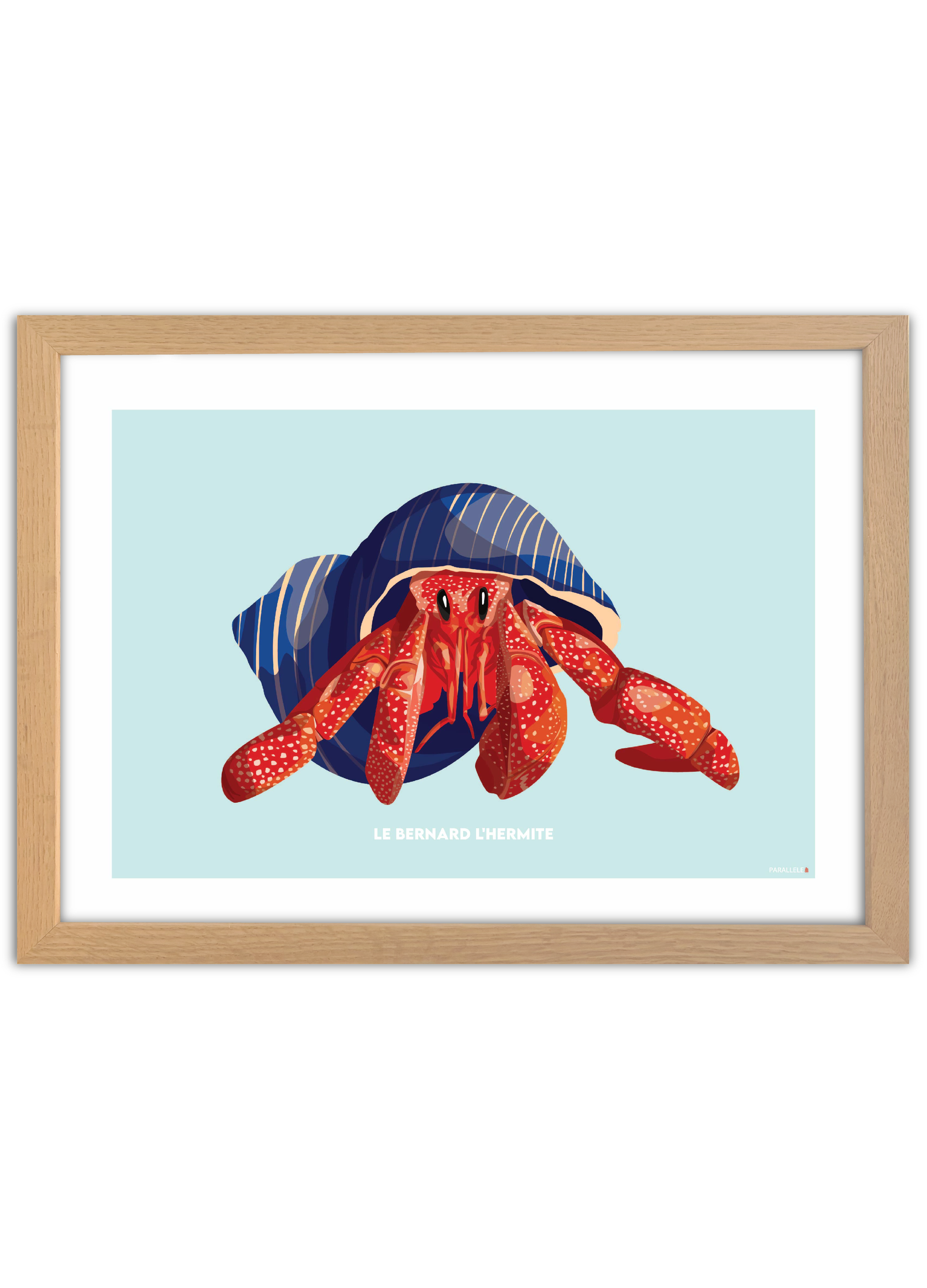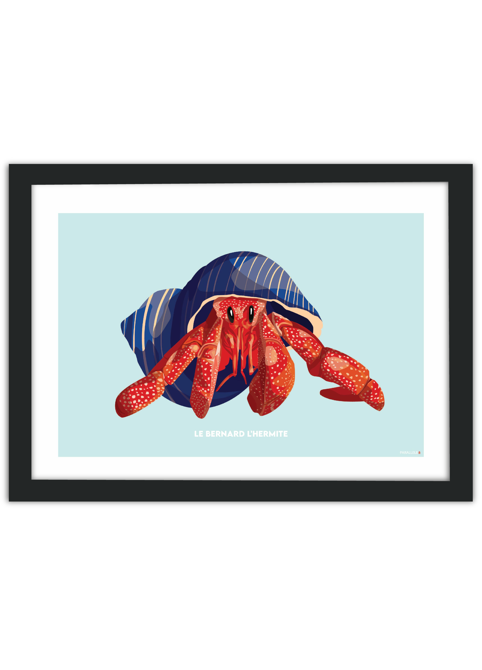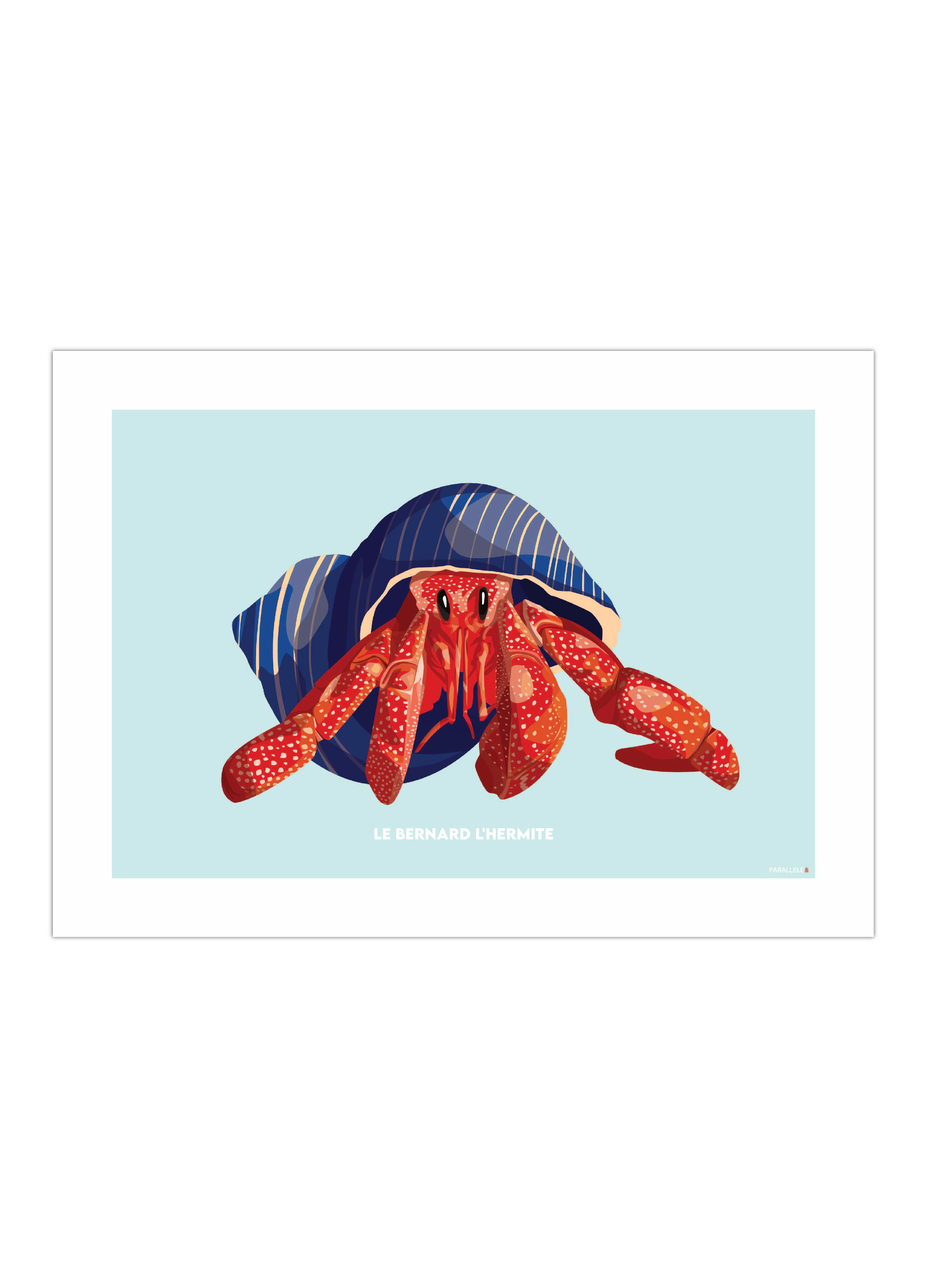 Le Bernard l'Hermite fait partie des crustacés les plus intrigants. Avec sa petite moue charmeuse, il saura égayer une chambre d'enfant mais pas seulement ! L'affiche a été dessinée et imprimée dans le Finistère en série limitée sur papier couché 300gr.